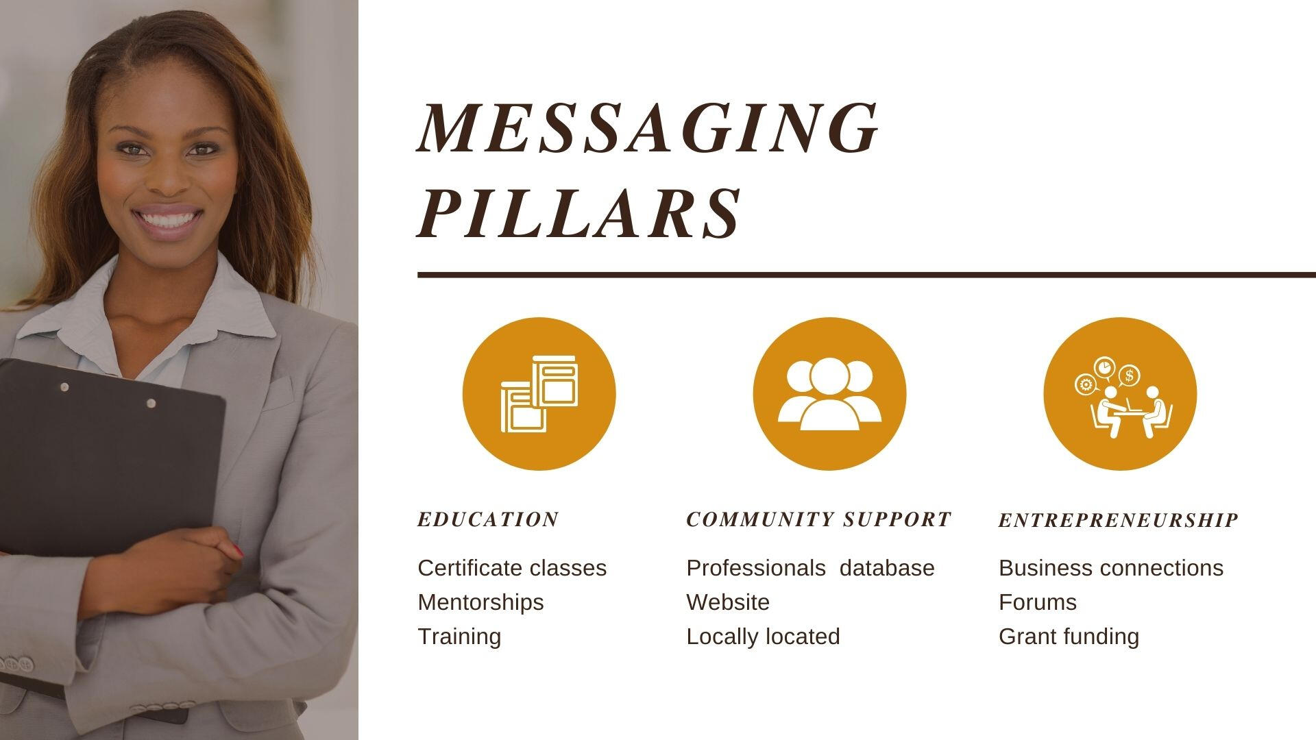 We created a 16 page presentation deck outlining the brand. The previously created logo was applied to it all: mockups, website, etc. The strategy has clearly communicated this new businesses needs and now they are ready to move forward and help their members.